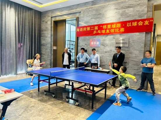 “老李,这球发的,可真够绝的!”“瞧乐乐那架势,是不是有点未来冠军的影子了?”……4月19日下午,宁波海语府休闲娱乐中心里,乒乓球落台的清脆声响,与阵阵欢笑、喝彩交织在一起。一场“邻里球趣,乒乓会友”社区友谊赛正温馨上演——没有专业选手,只有左邻右舍;不为争冠,只为相聚。